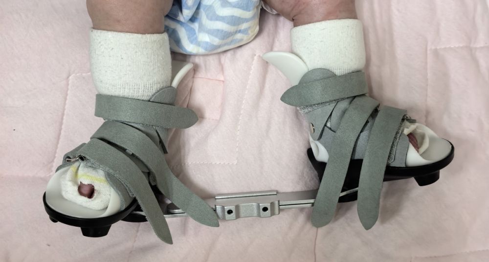 近日,丽江市人民医院儿科接诊了一名特殊的新生儿。患儿在产前B超中即提示“左侧先天性马蹄足可能”,出生后查体确诊。经过丽江市人民医院小儿外科团队系统性的“潘赛缇(Ponseti)方法”矫治,患儿顺利完成系列石膏固定与微创跟腱延长术,目前已进入支具巩固阶段,双足外观与功能恢复良好。