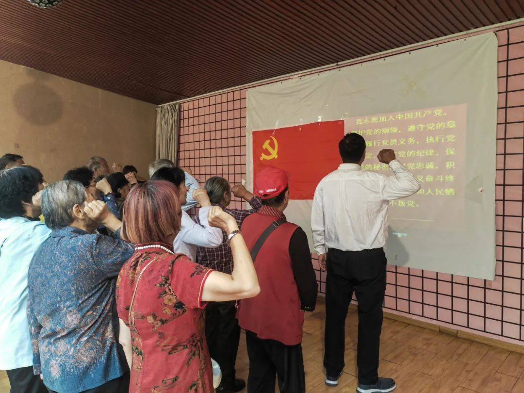 当天,退休一支部、二支部联合开展“银发心向党·余热映初心”主题党日活动。全体党员佩戴党徽重温入党誓词,联系支部党委委员、副院长杨文红讲授专题党课。部分老同志还到高龄老党员家中入户慰问,为他们送去了党组织的温暖。